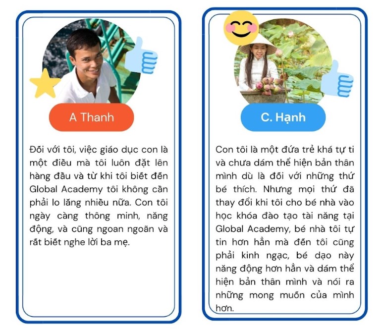 Đồng thời, Global Academy nhận tư vấn những chiến lược marketing hiệu quả, xây dựng thương hiệu phát triển, bồi dưỡng tài năng trẻ và tạo ra môi trường học tập chuyên nghiệp, thân thiện và luôn luôn lắng nghe, thấu hiểu con trẻ.