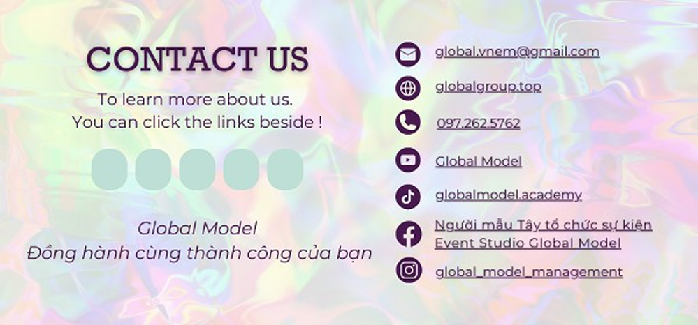 Xem thêm: HỌC VIỆN ĐÀO TẠO NGƯỜI MẪU - GLOBAL MODEL ACADEMY